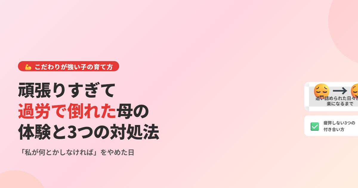 こだわりの強い子を育てていると、毎日が戦いのように感じることもあります。でも、あなたが限界まで頑張らなくても、子どもはちゃんと育ちます。