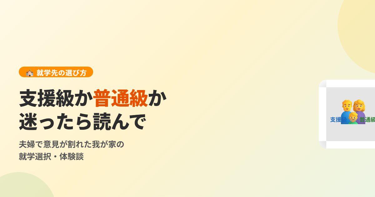 今日は、我が家が小学校入学前に直面した「支援級か普通級か」という決断について書きます。同じように悩んでいる方に、少しでも参考になれば嬉しいです。