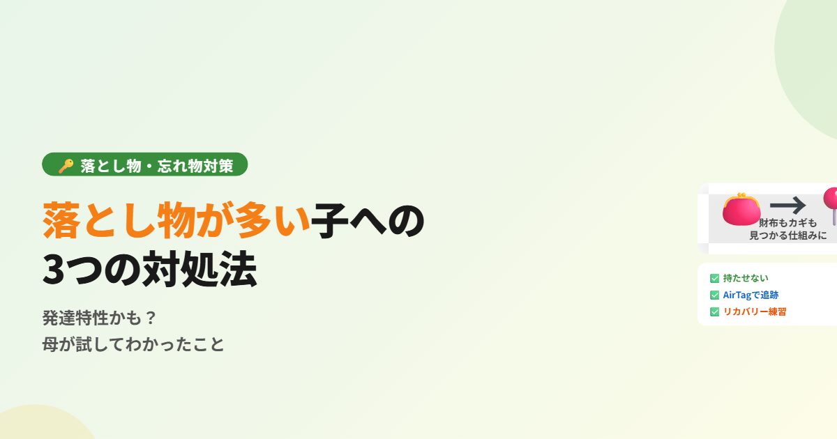 落とし物対策は一朝一夕にはいきません。でも「特性かもしれない」と理解してから、親の心持ちはだいぶ変わりました。完璧を求めるのをやめて、一緒に仕組みを作っていく気持ちで関わると、子どもとの関係も少し楽になります。怒るより笑える日が増えたら、それだけで十分だと今は思っています。