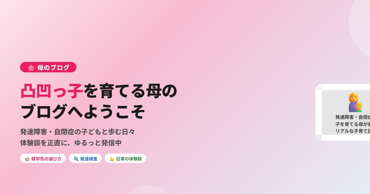 失敗談も、しんどかった日も、うまくいったことも、全部正直に書いていくつもりです。「正解を教えてもらう」より「一緒に悩んでいる人がいる」と感じてもらえることを大切にしたいと思っています。子どもの特性は、ずっと同じではありません。「あの頃こんなに大変だったのに」と思うくらい成長していく瞬間を、何度も経験してきました。